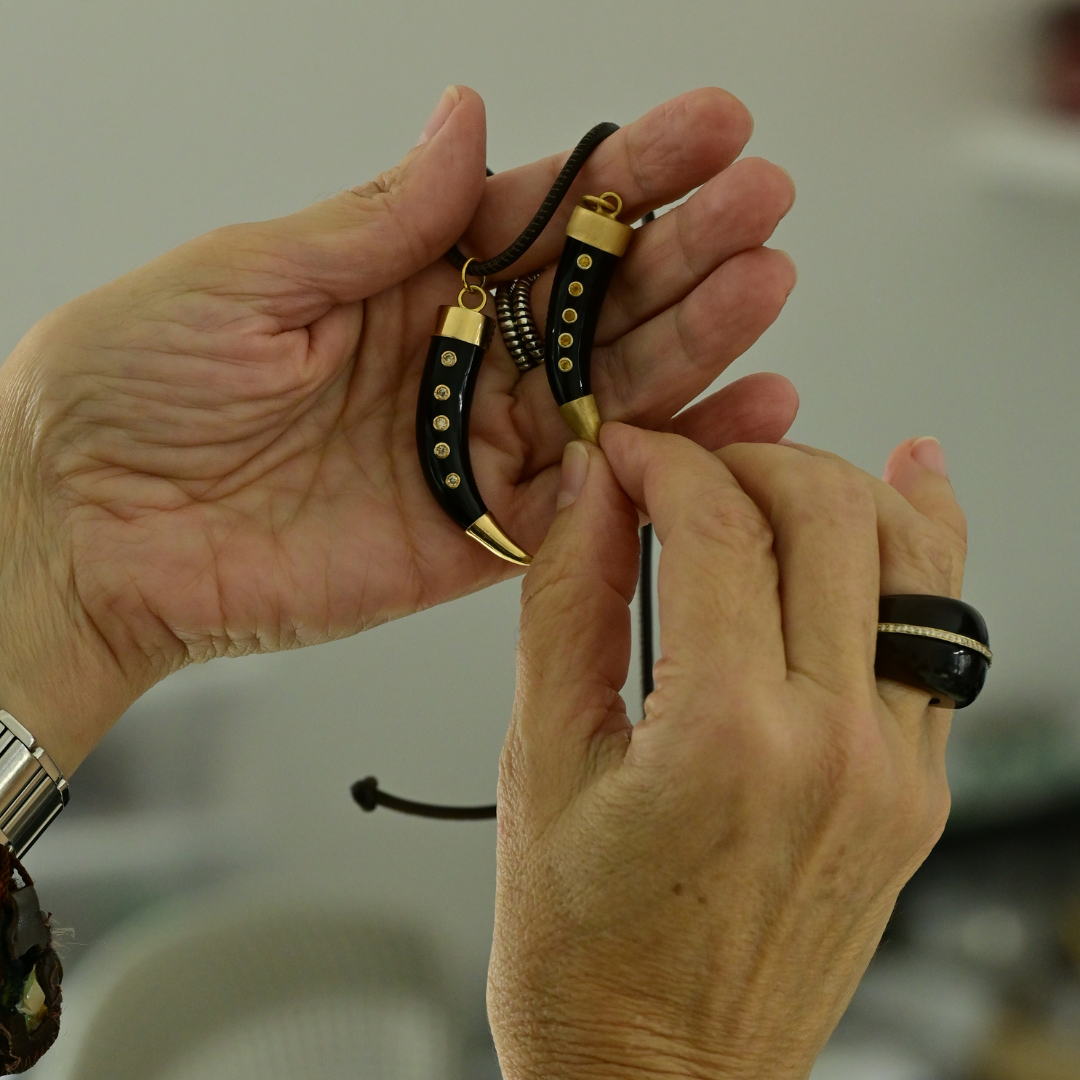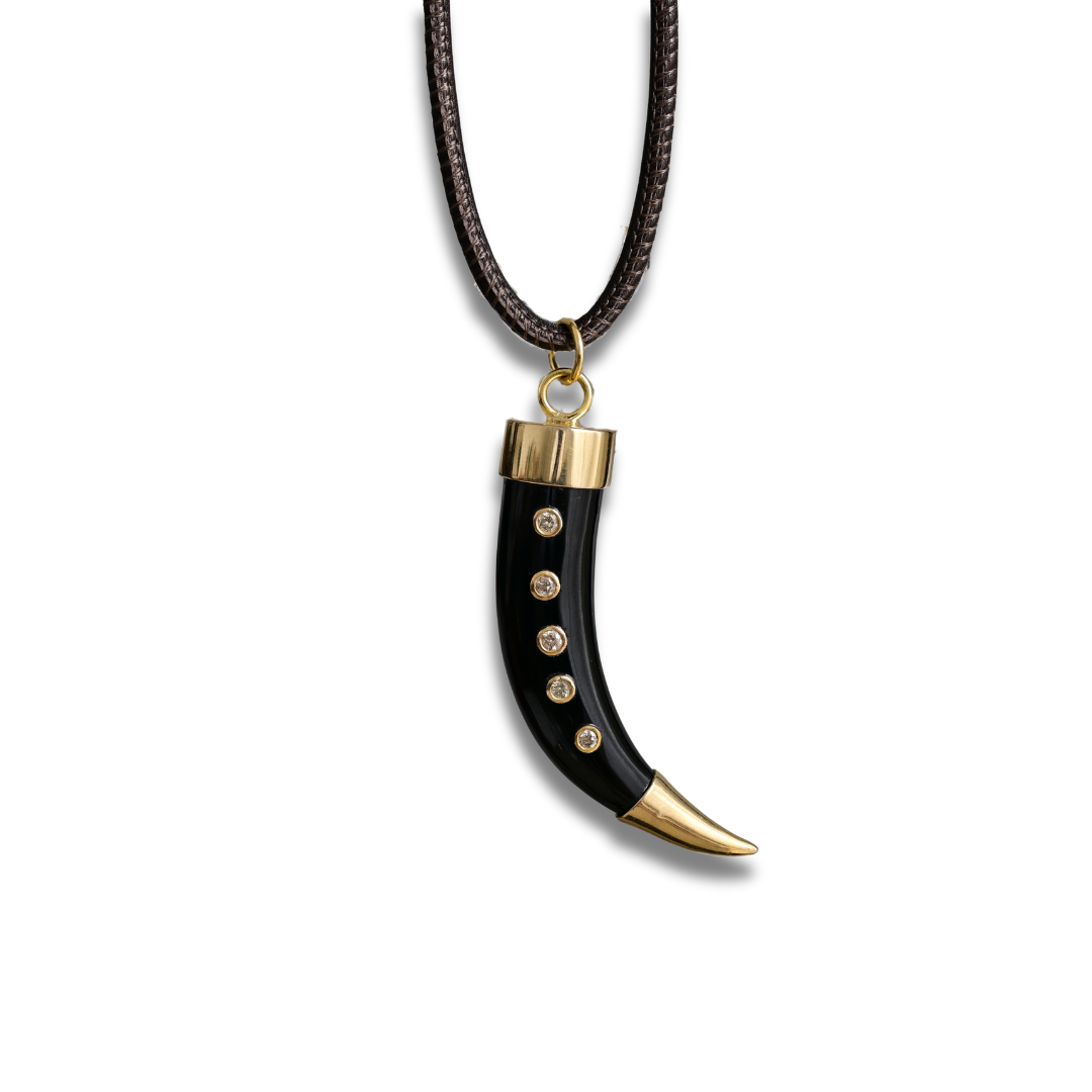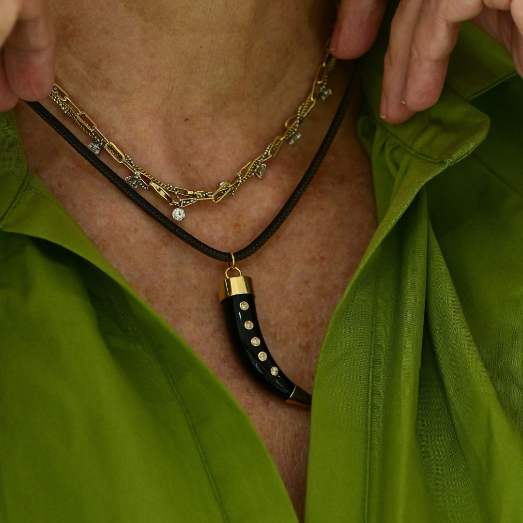 Materials: Diamonds, Gold Plated Sterling Silver, Leather Chord